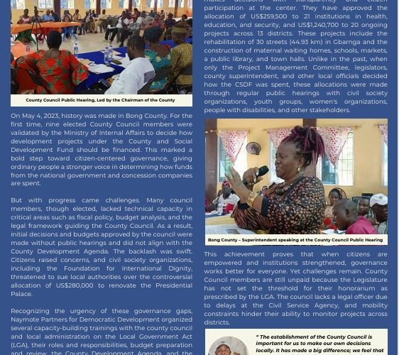 On May 4, 2023, history was made in Bong County. For the first time, nine elected County Council members were validated by the Ministry of Internal Affairs to decide how development projects under the County and Social Development Fund should be financed. This marked a bold step toward citizen-centered governance,...